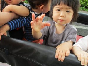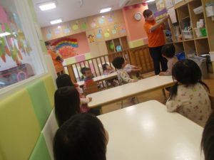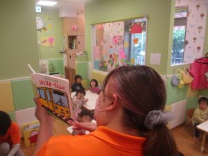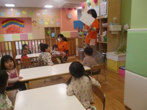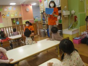 文字通り可愛い電車が街中を走っていくシンプルな内容となっておりますが、電車が大好きな谷津園のお子様達はとても集中して見ておりました♪