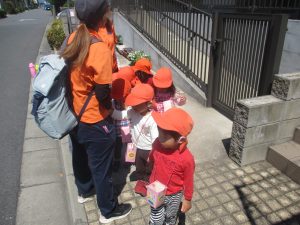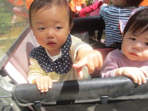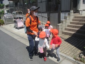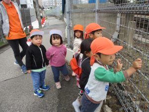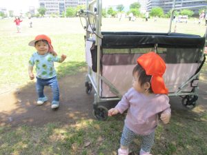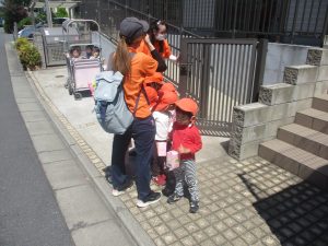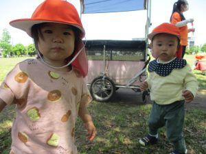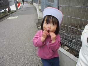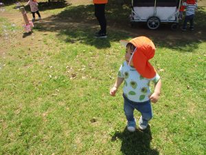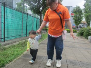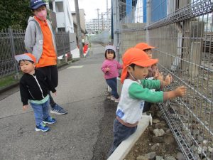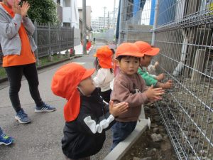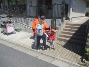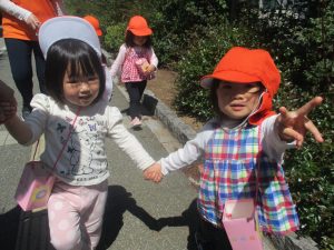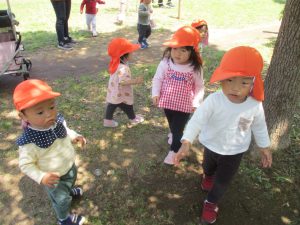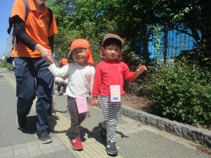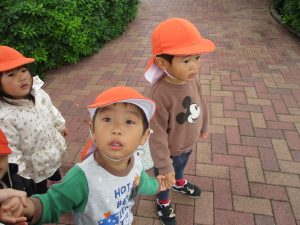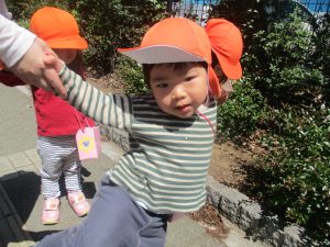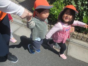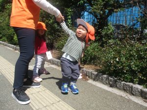 日中は年齢別に分かれ、戸外散歩を行いました!