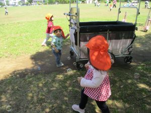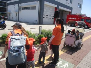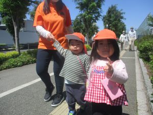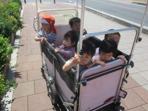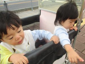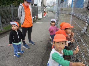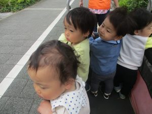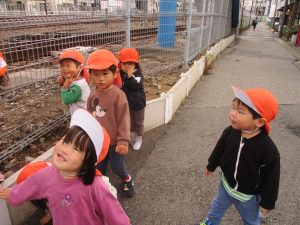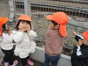 津田沼駅周辺で電車を見たり、園周辺をお散歩しては気持ち良く過ごせました。