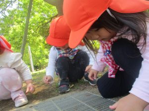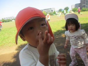 園周辺をお散歩したり、防災公園内にて自然物探しを楽しみました。