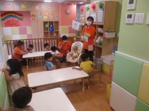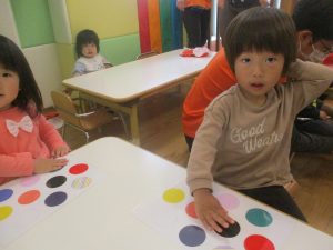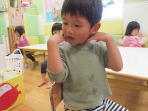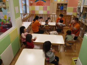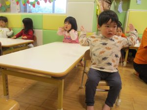 ”ハンドサイン”の活動では、「ド」の音が聞こえるとお膝を、「ソ」の音が聞こえると肩をたたくといった、音の違いにも気づけるようになって参りました♪