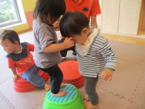 今月の体操では、マットやバランスストーンを使ったミニサーキットを楽しんでおります♪