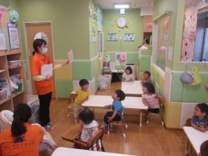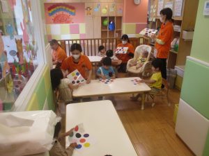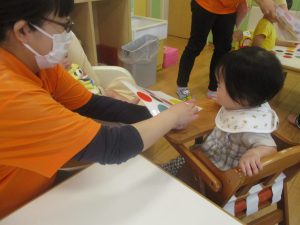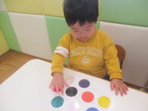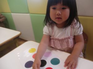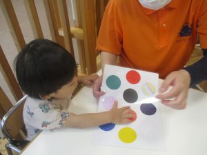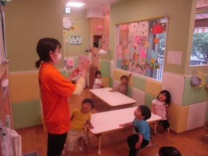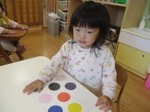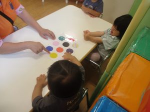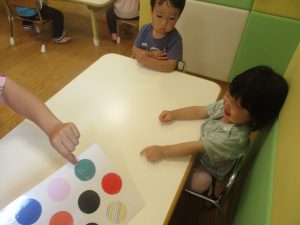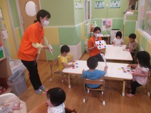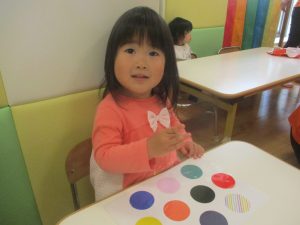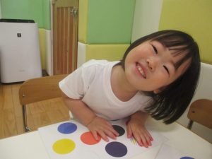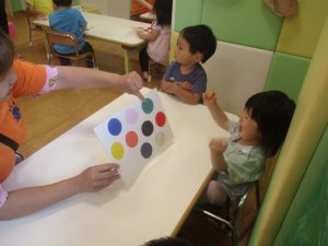 今月の英語では、先月の”挨拶”に加え、”色”を英語で覚えていく活動を行っております。