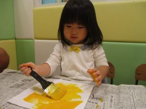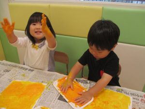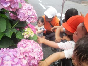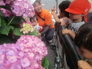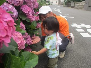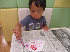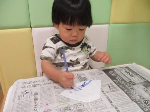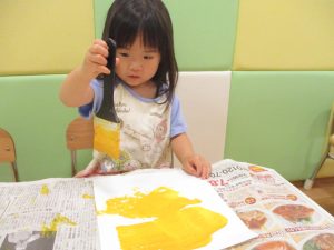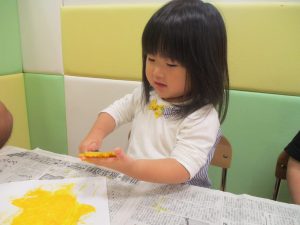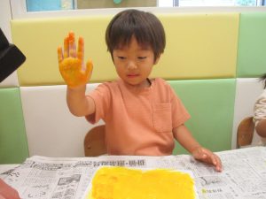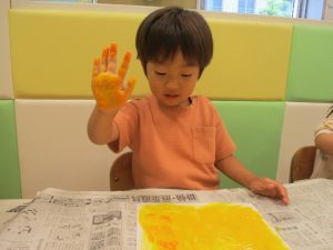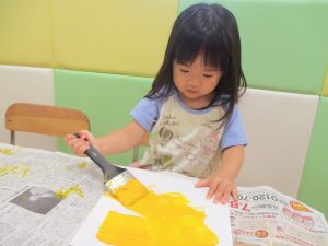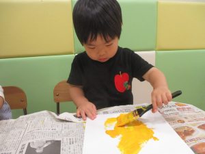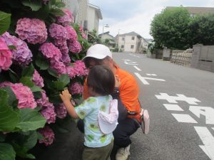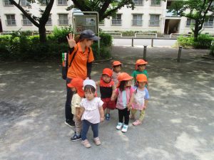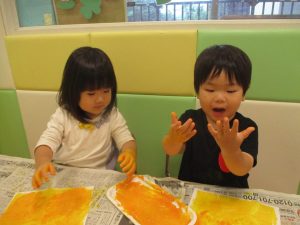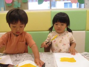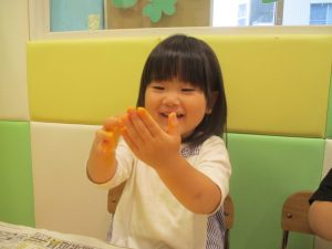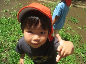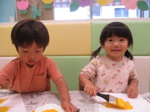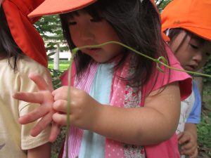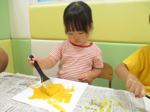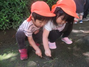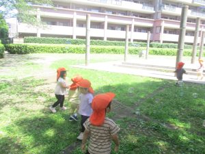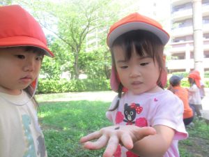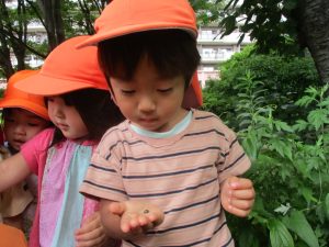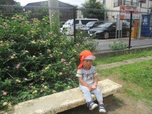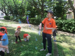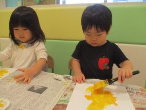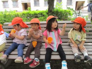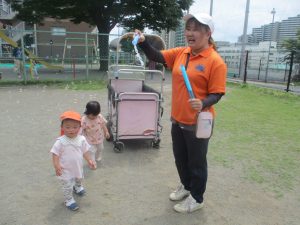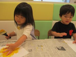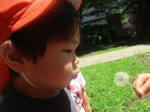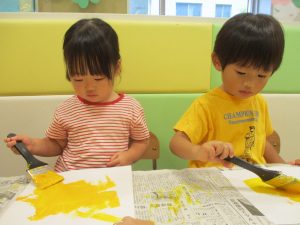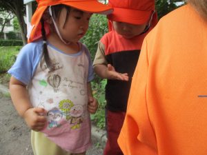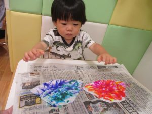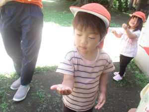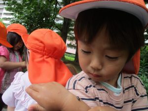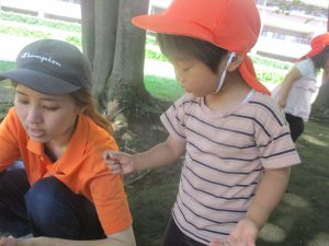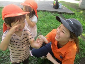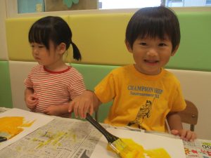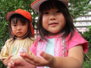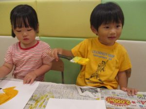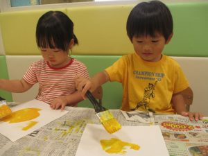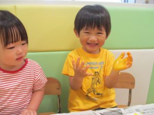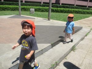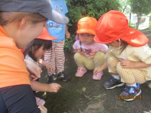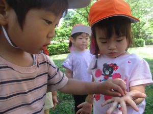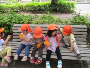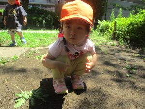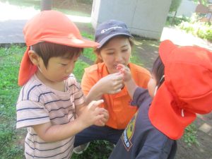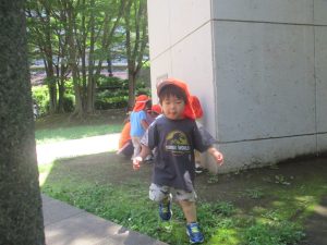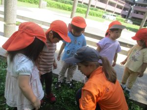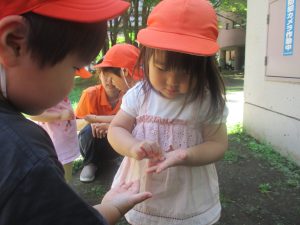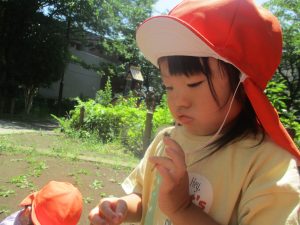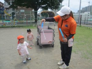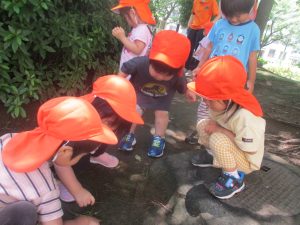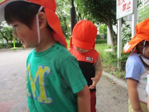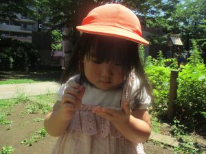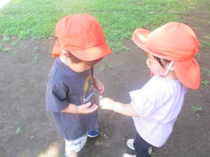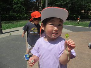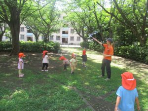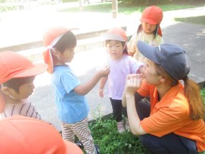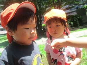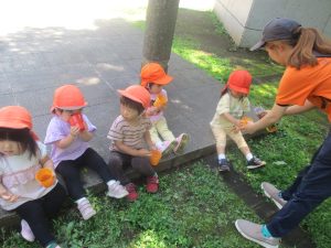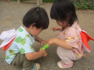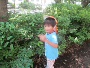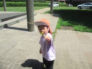 さくら公園の奥の広場で自然物探しを楽しんだり、夏の製作を楽しみました。