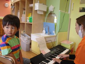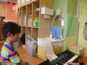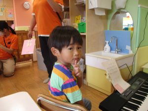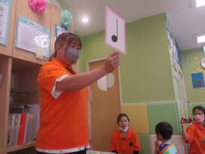 また、「かえるのがっしょう」や「きらきらぼし」など簡単な歌を四分音符(♩)や八分音符(♪)、二分音符など音譜で表現する活動にも取り組んでおります!