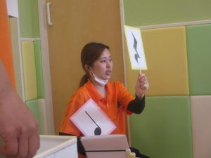 ハンドサイン、「ド」と「ソ」も継続して頑張っております♪先生の「スピードアップ!」の声掛けに盛り上がり、 「ドソドソ!ドドド!」と音を上手に聞き分けておりますよ。