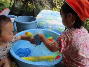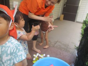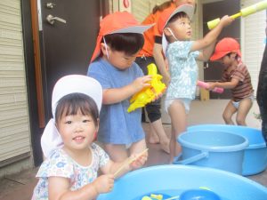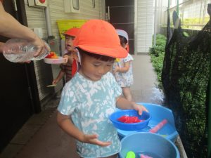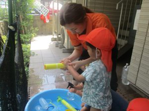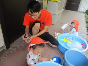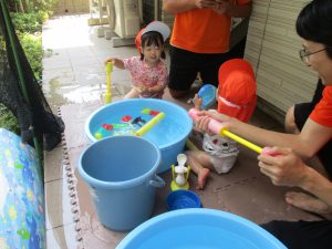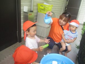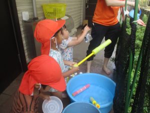 在園のお子様達はすぐに昨年度の水遊びを思い出したのか、存分に楽しんでおりました。