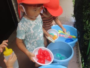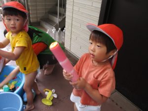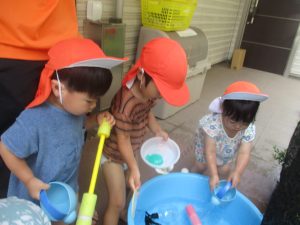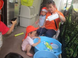 日中は水遊びを行ないました!