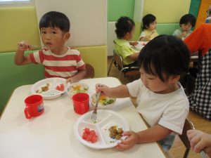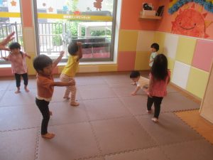 日中は水遊びを楽しんだり、室内でも体操を行い活発に過ごしました!