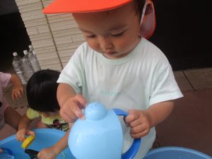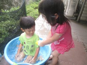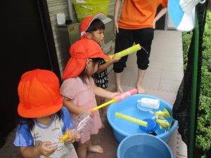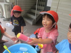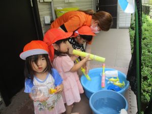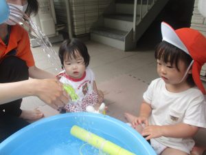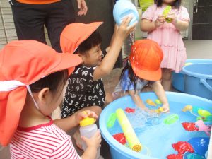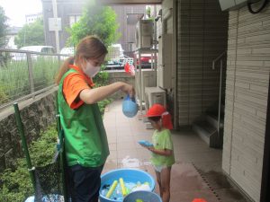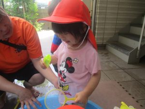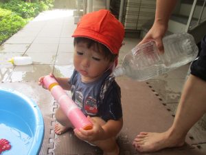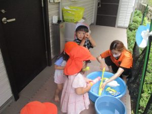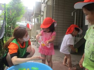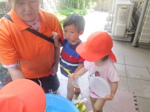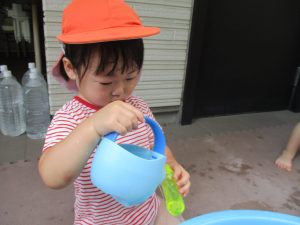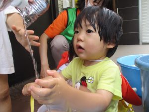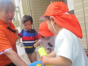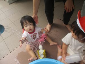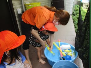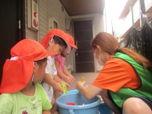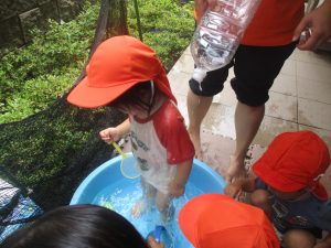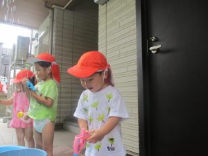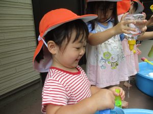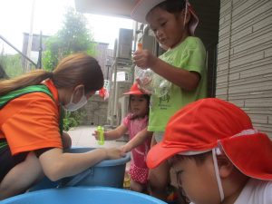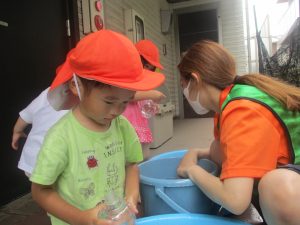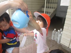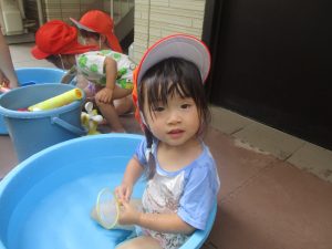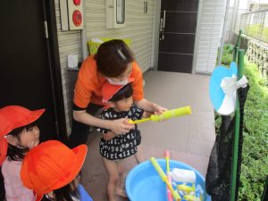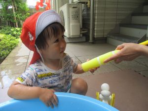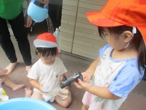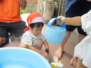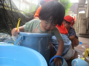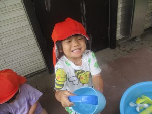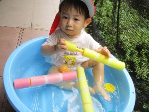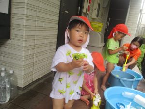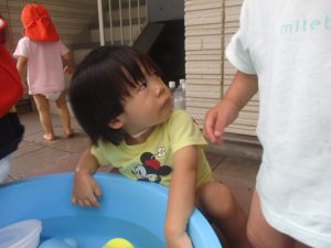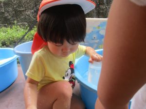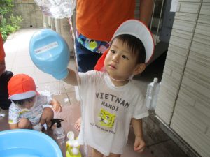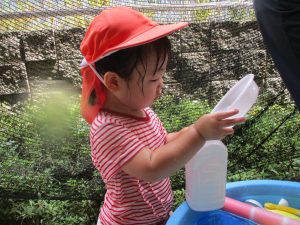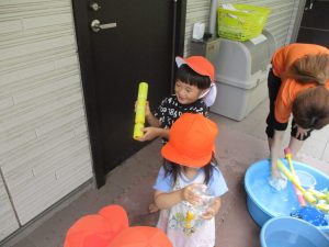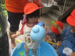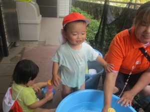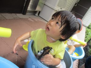 先週より開始した水遊びも、日に日に参加できるお子様も増え、盛り上がりが出て参りました!