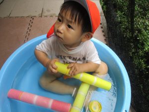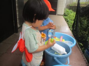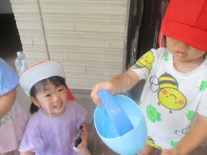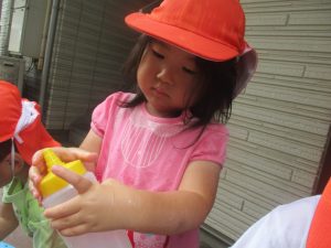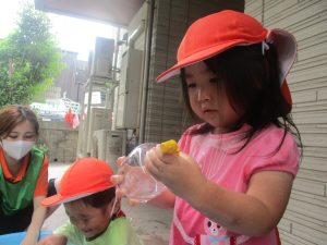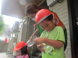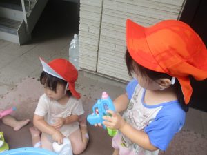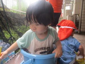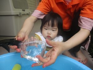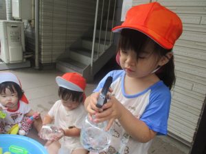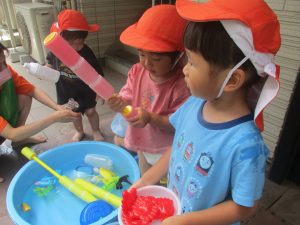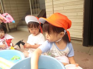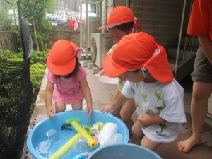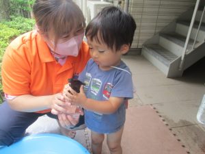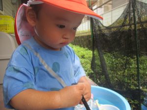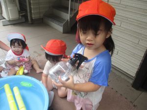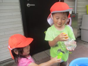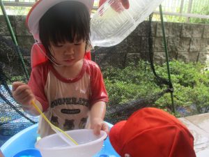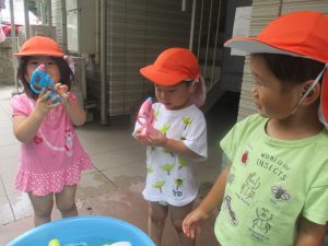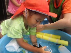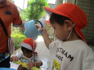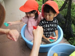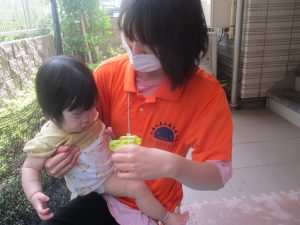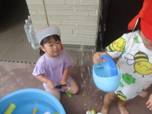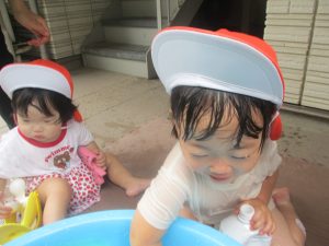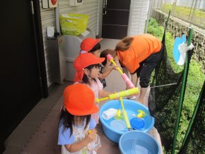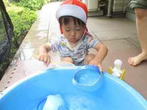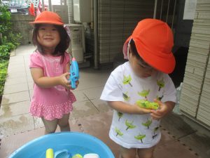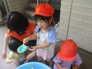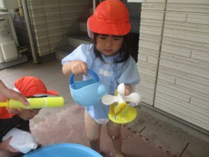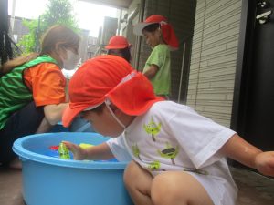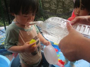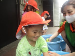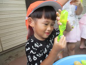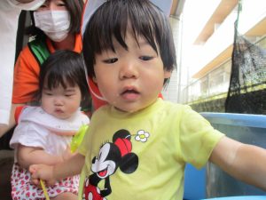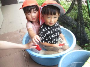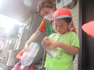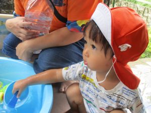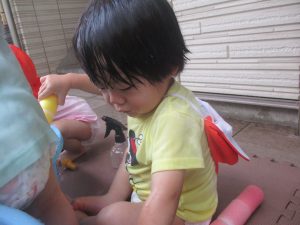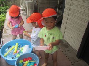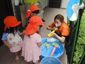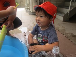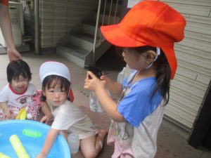 先週より開始した水遊びも、日に日に参加できるお子様も増え、盛り上がりが出て参りました!