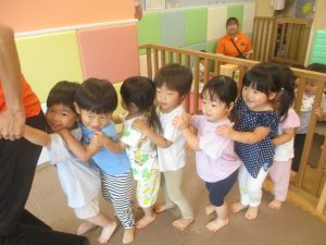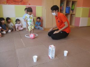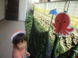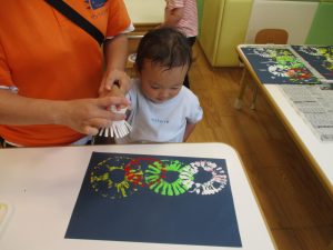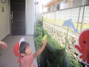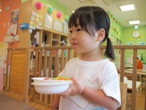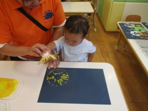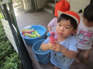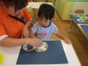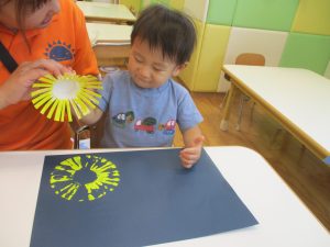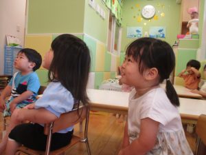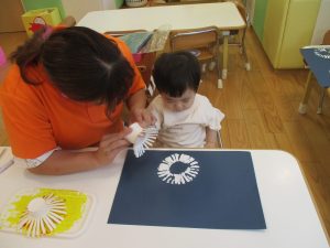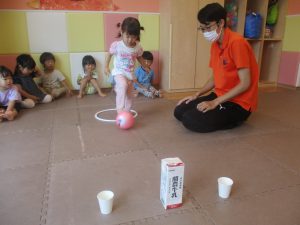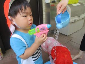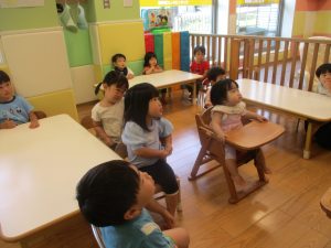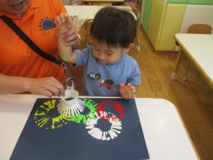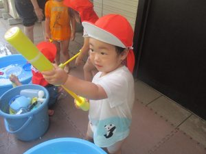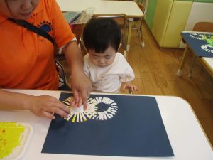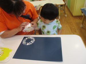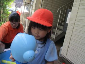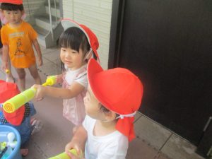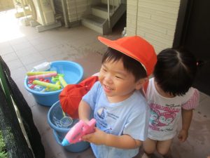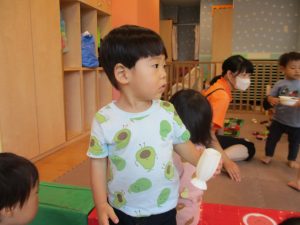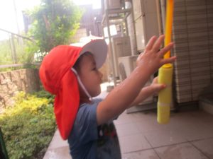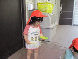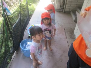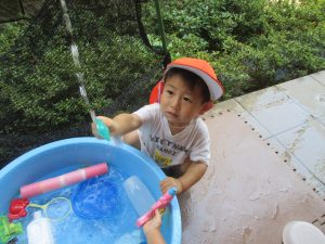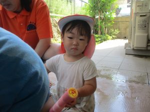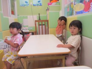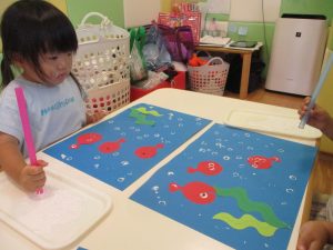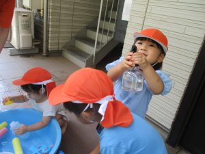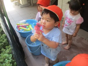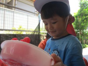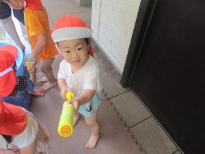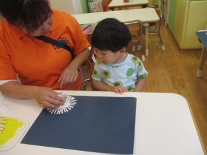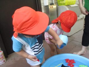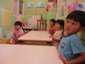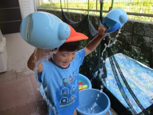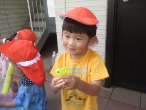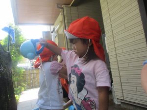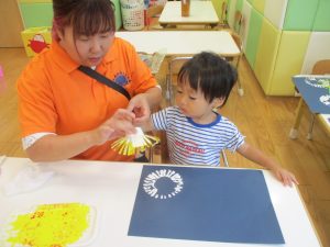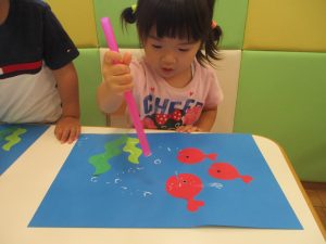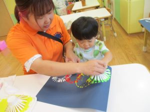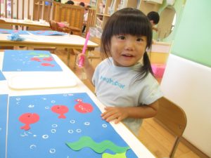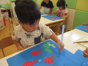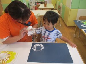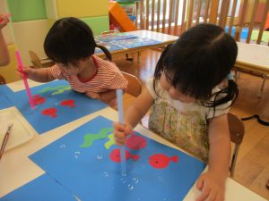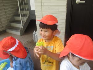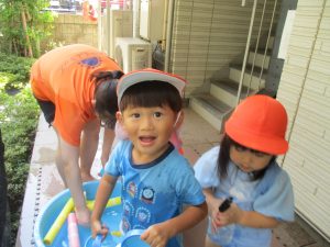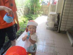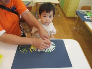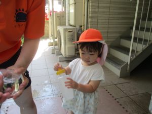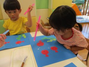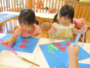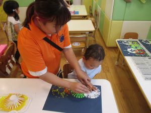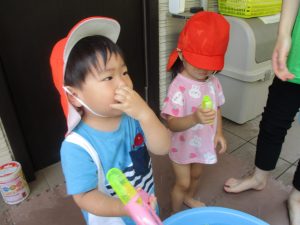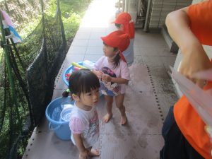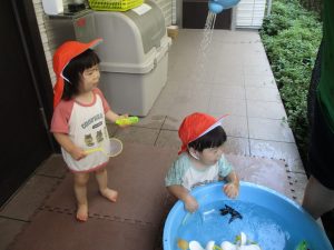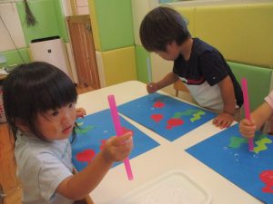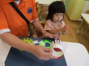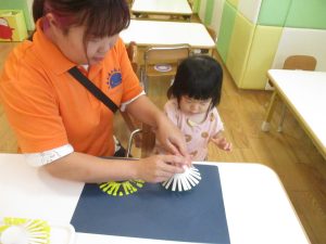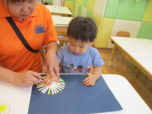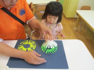日中は室内にて夏の製作を楽しんだり、水遊びを行ないました。