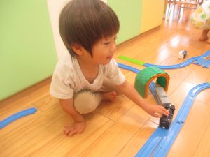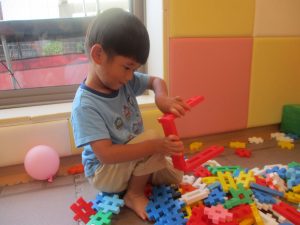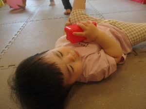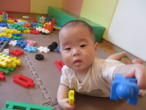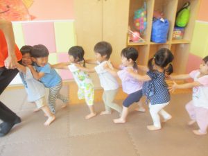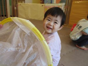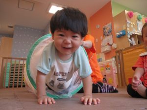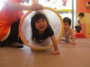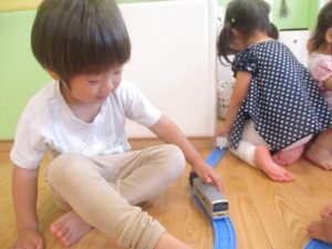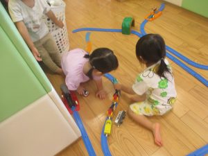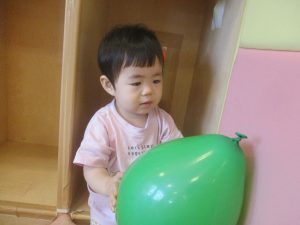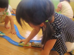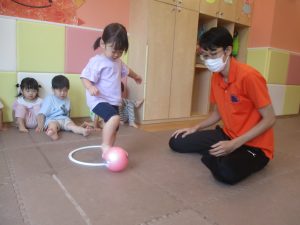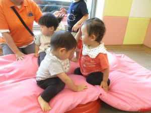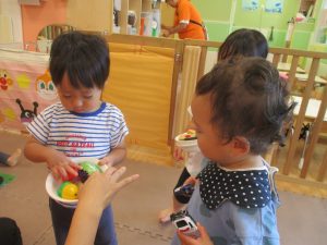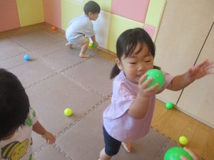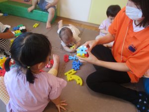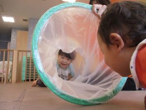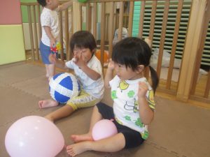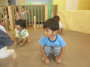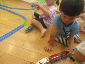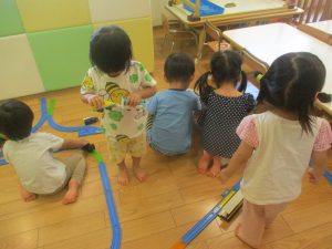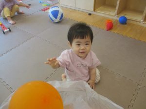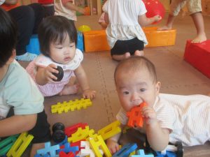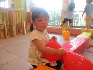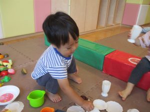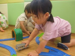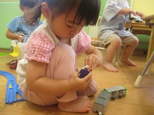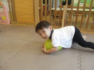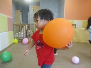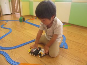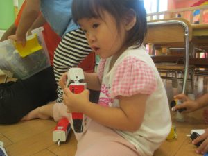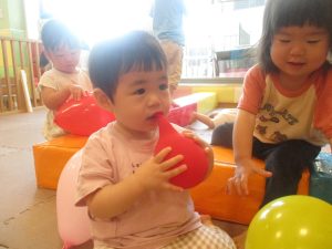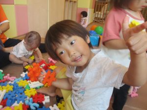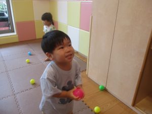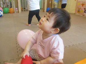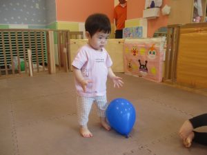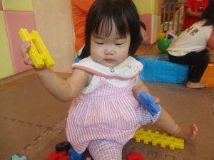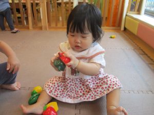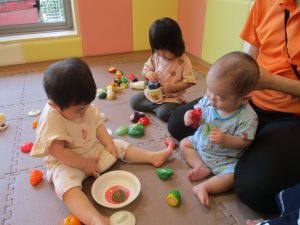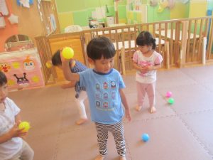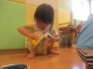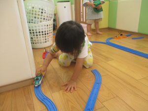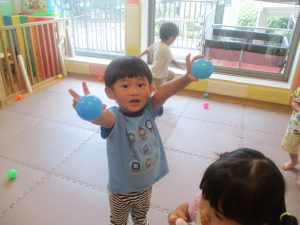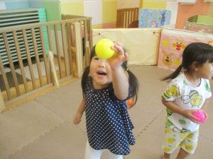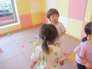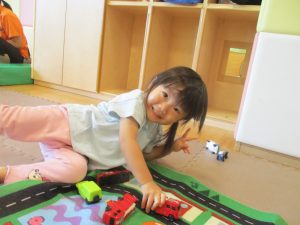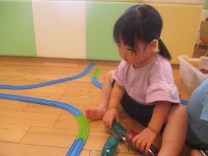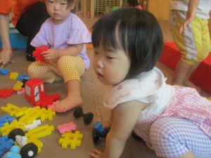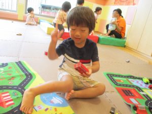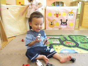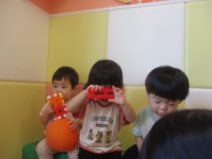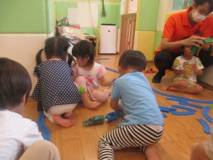 年齢別に分かれ、体を動かしたり好きな玩具に夢中でした。