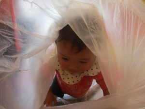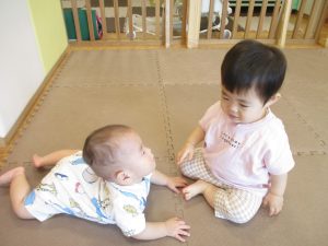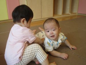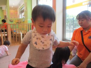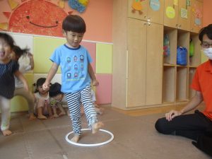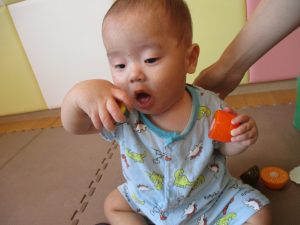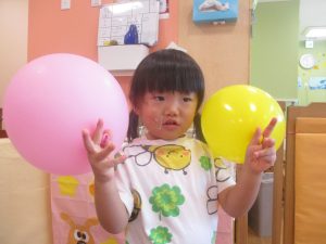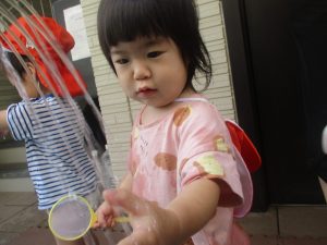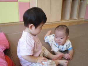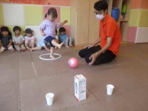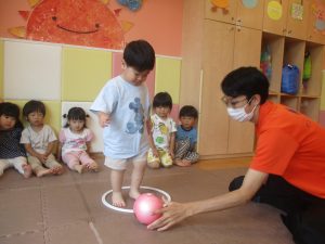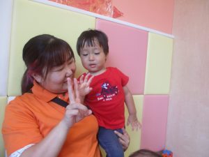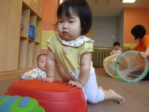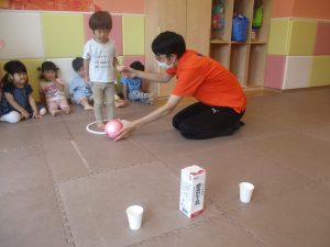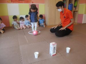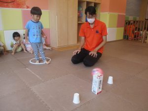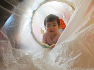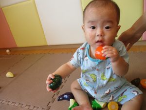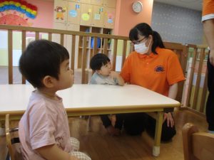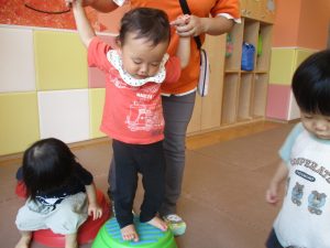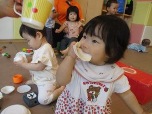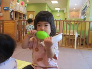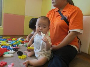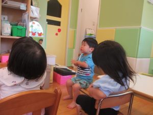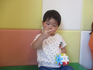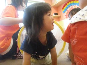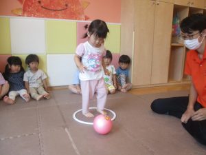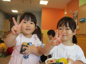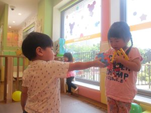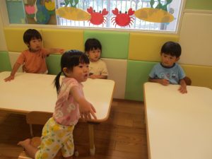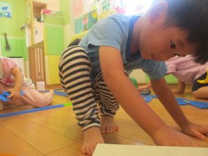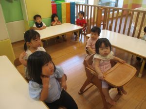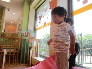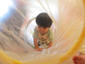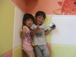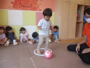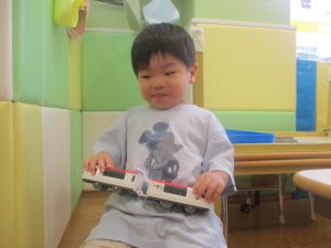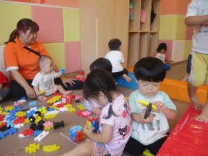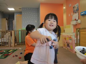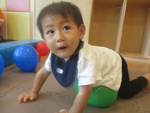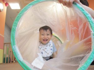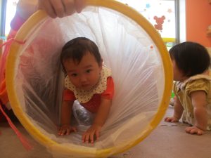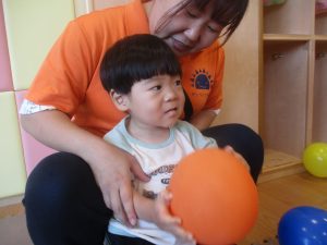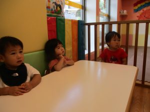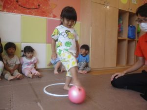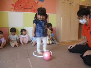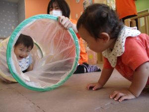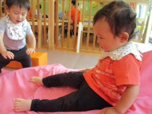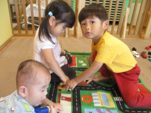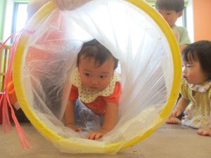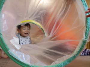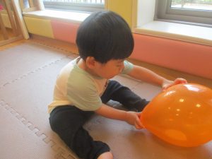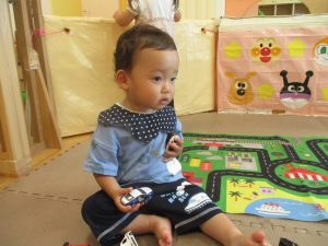 年齢別に分かれ、体を動かしたり好きな玩具に夢中でした。