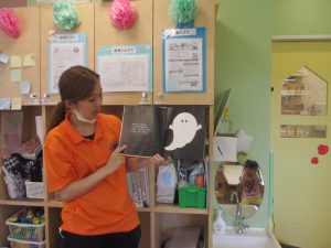 食べたものに化けるばけたくん、予想通りの展開に子ども達も安心して読み合いに参加しておりました♪