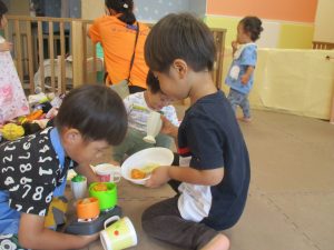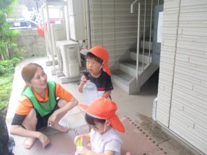 連日の水遊びですが、お子様達に飽きる様子は一切なく「お水楽しかった」と大満足の様子でした♪