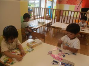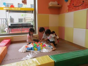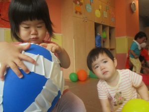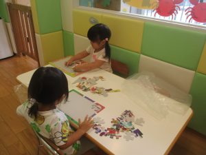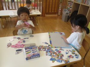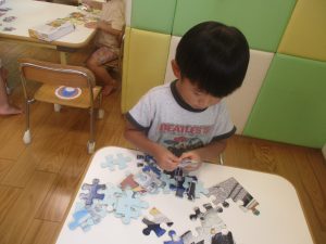 室内でも風船遊びで体を動かしたり、パズル遊びに夢中でした。