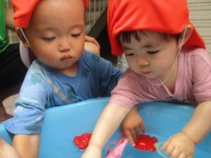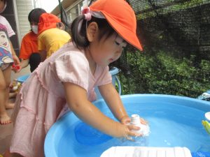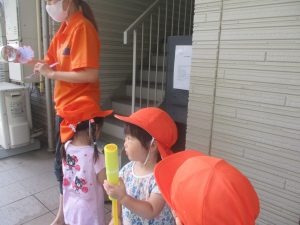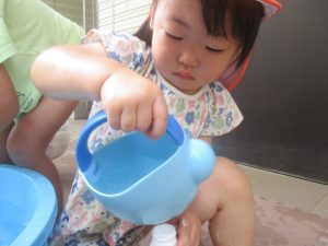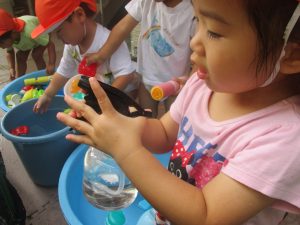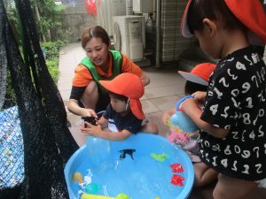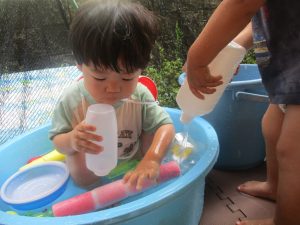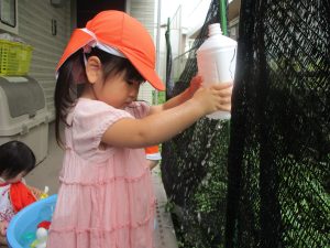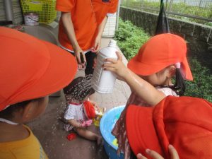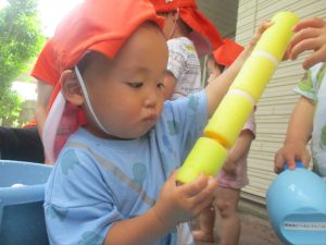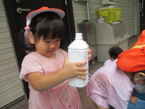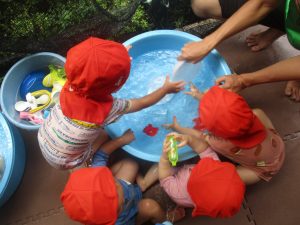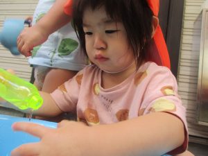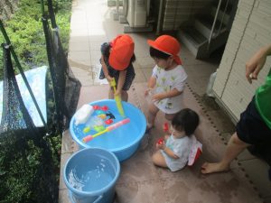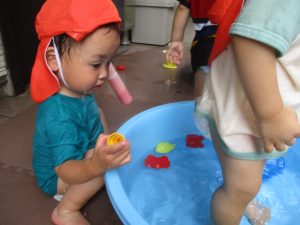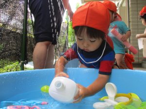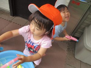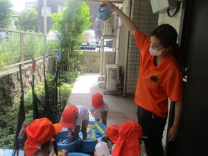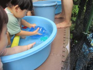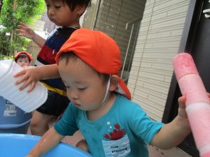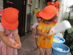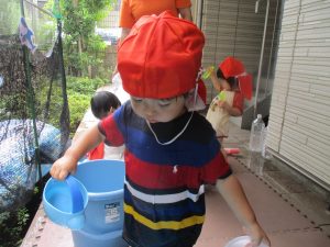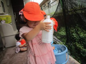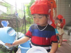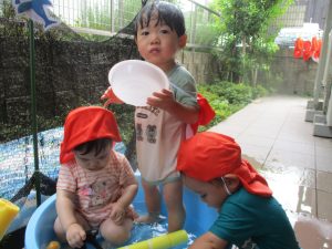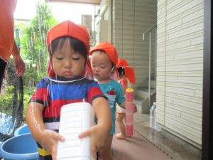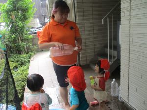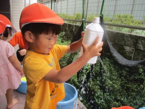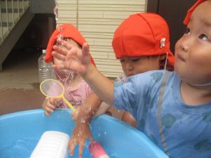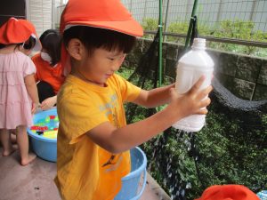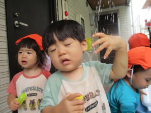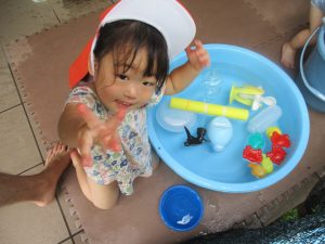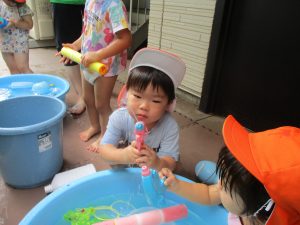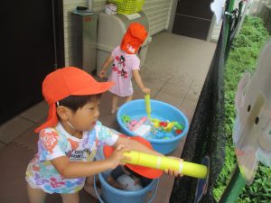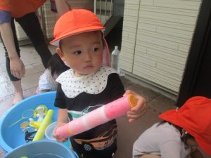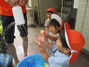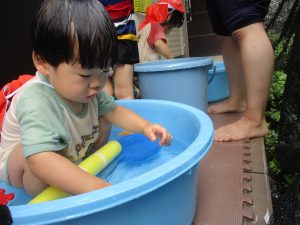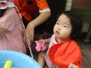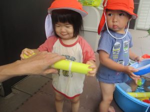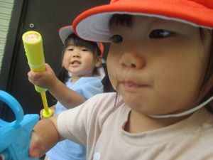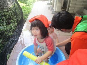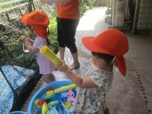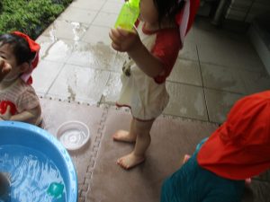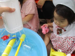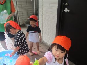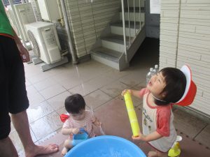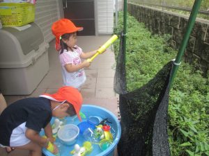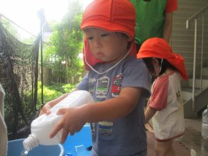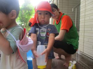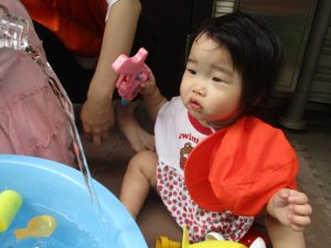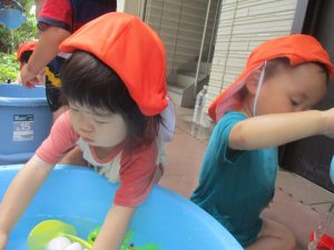 登園したほとんどのお子様が水遊びを行なえ、ボリューム満点の水遊びとなりました。