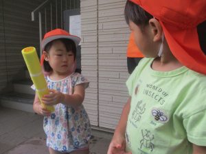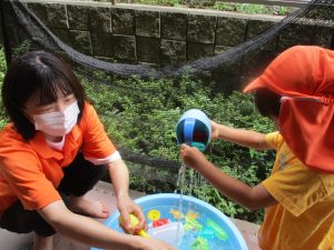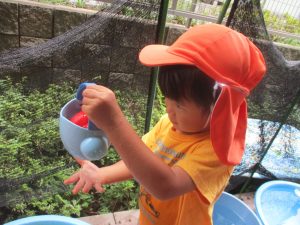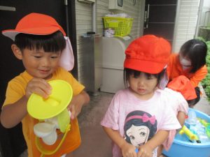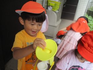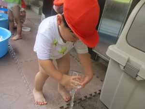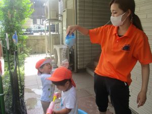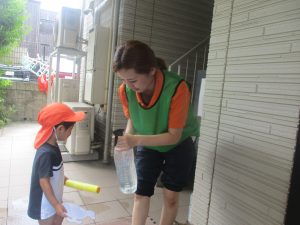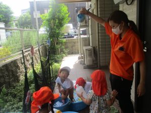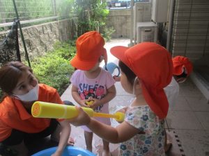 梅雨明けこそ例年通りでしたが、今年の夏も連日の猛暑が続き水遊びも多く行えております。