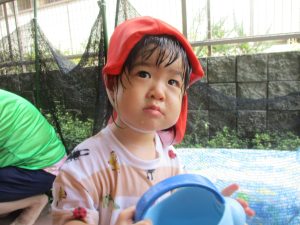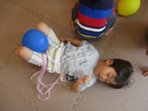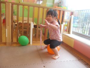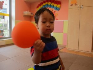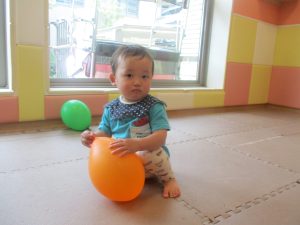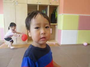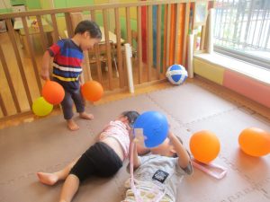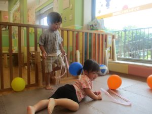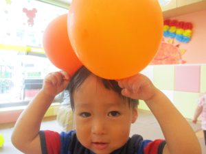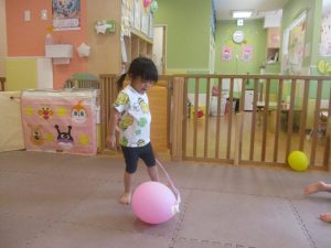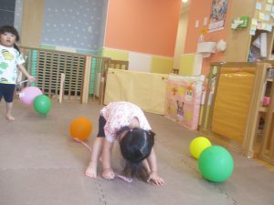 日中は水遊びを楽しんだり、室内でも風船を使用してたくさん体を動かしました。