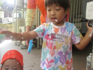 日中は全員で水遊びを楽しみました。