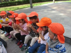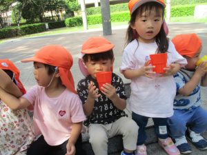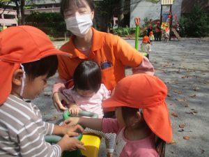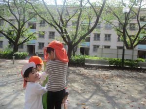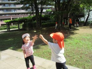 日中はさくら公園にて自然物探しを中心に皆でのびのびと過ごしました!