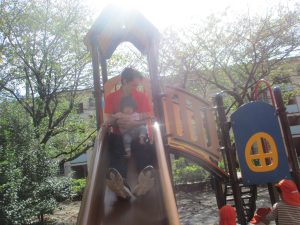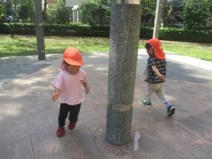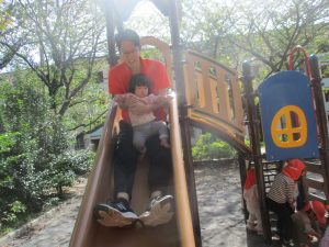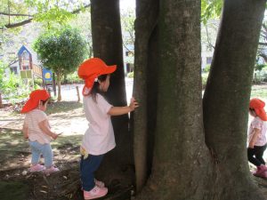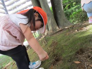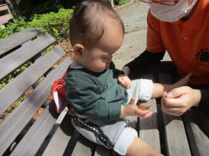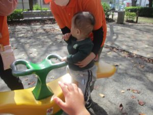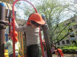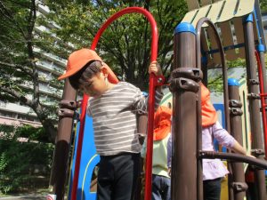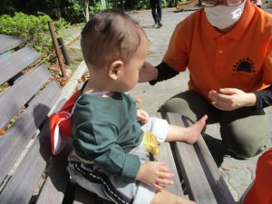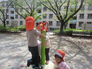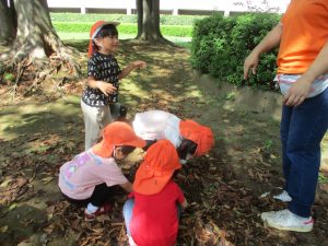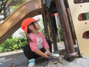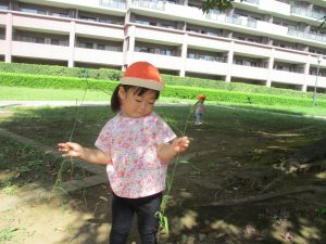 自然物探しを楽しんだり、固定遊具を使用してたくさん体を動かして遊びました。