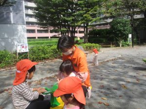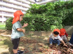 10月後半も引き続き、戸外活動を中心に全員で季節の移り変わりや秋を存分に感じていきたいと思います。