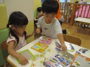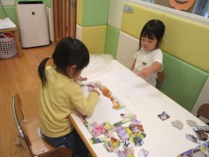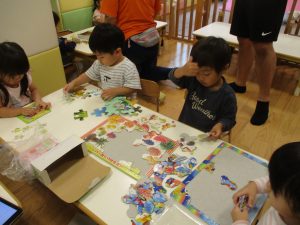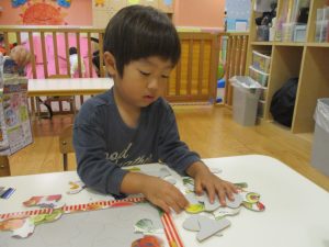サーキット遊びでたくさん体を動かしたり、パズルや絵描き等の机上遊びも楽しみました。