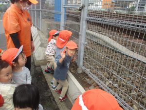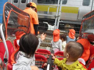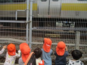 「でんしゃ見たよー!」と自慢気に教えてくれました。