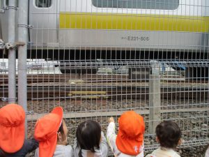 日中は皆で津田沼駅周辺まで電車を見に行きました!