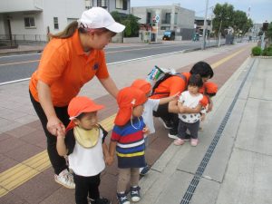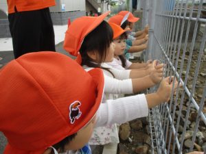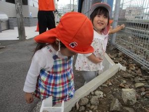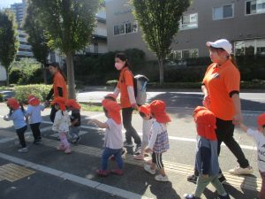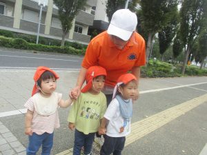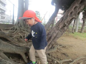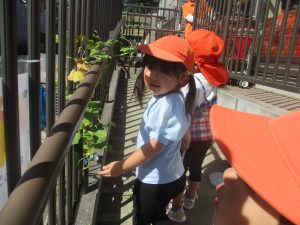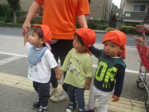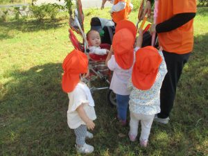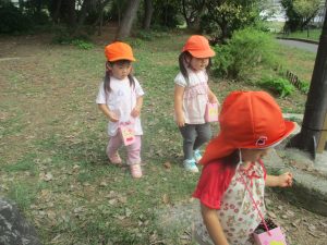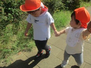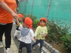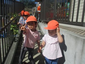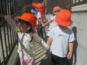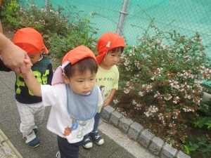 日中は年齢別に分かれ、園周辺の戸外散歩を楽しみました!