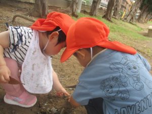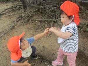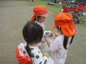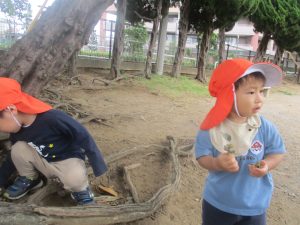 日中は園裏の6丁目公園にて過ごし、自然物探しを存分に楽しみました!
