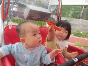 日中は年齢別に戸外散歩を楽しみました!