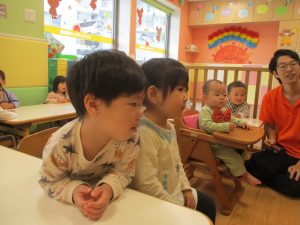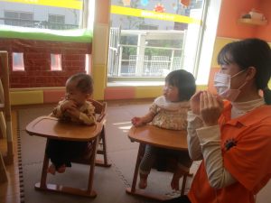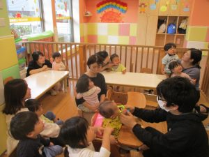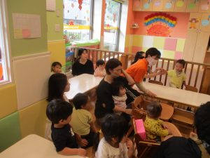 日中は保育参観1日目(0.1歳児クラス)を行いました。