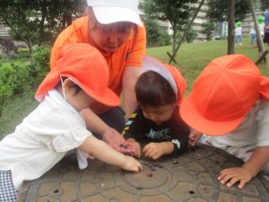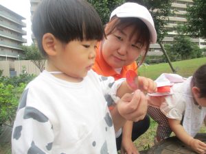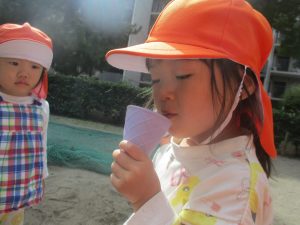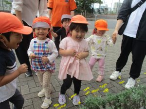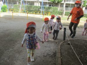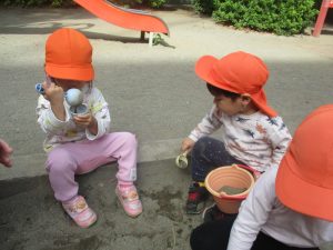 日中は年齢別に分かれて戸外活動を行いました!