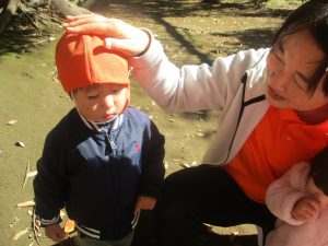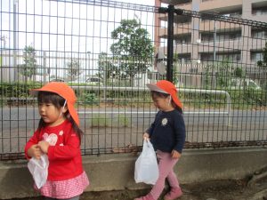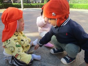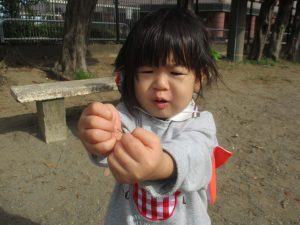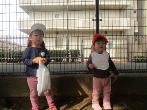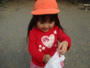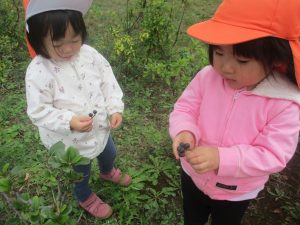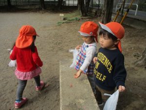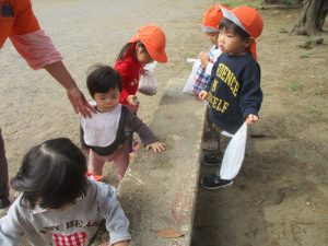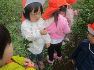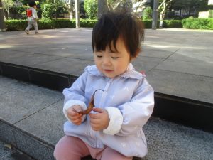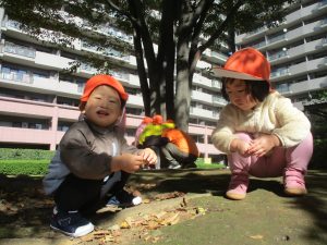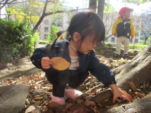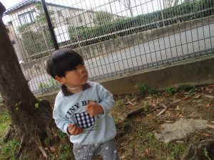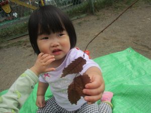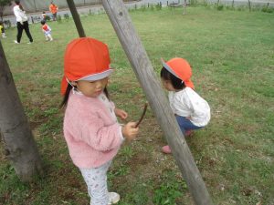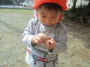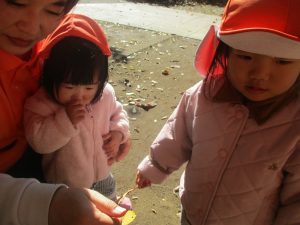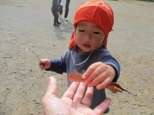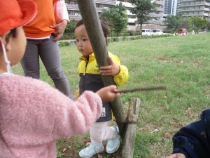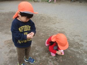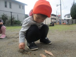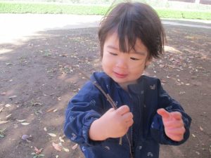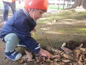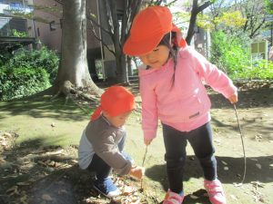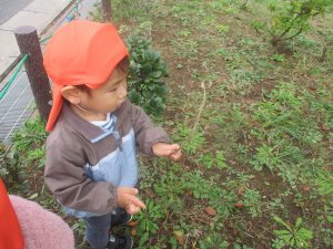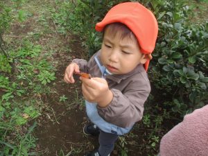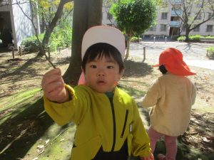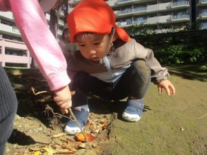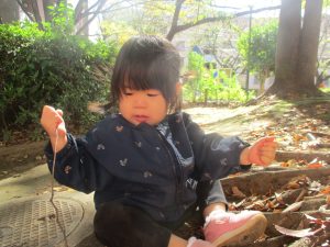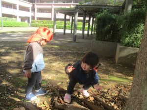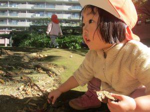 木の枝や枯れ葉と言った自然物探しに夢中でした♪