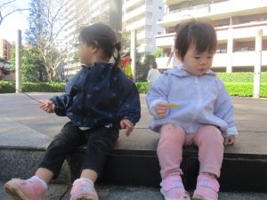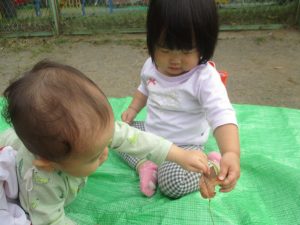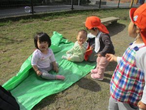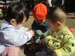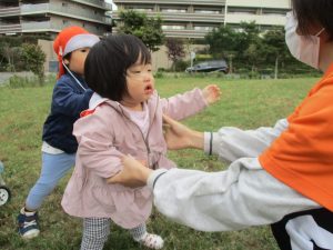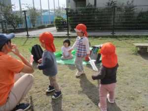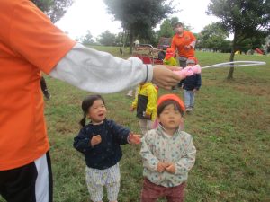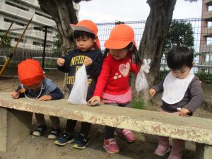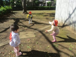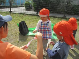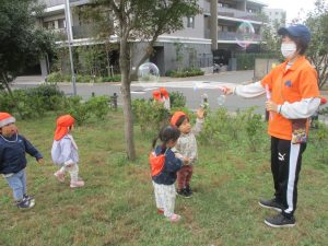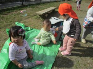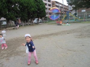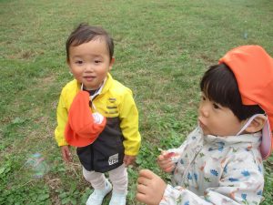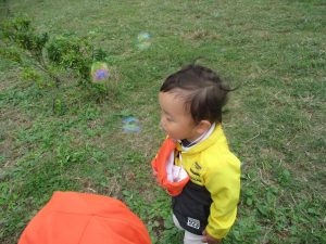 自然物探しを楽しんだり、シャボン玉を追いかけてはたくさん体を動かしました!