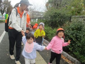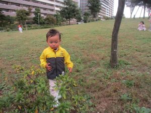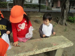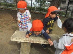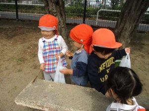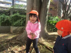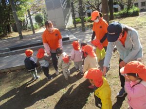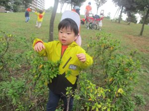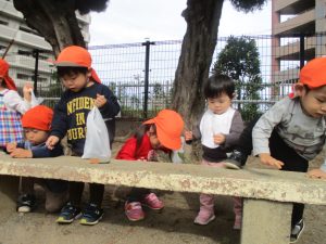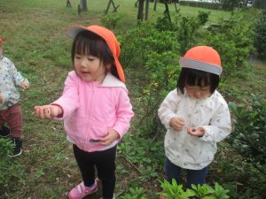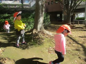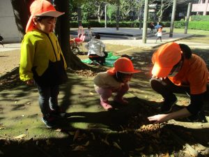 「自然物探し真っ最中」と言わんばかりに、公園内を皆で楽しく散策いたしました。
