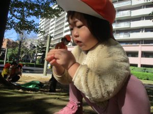 この時期にぴったりで、子ども達も「どんぐり!」と喜んでおりました。