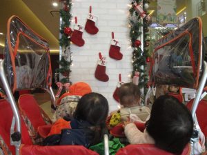 先週までハロウインモード全開だったモール内はあっという間にクリスマスモードへ。