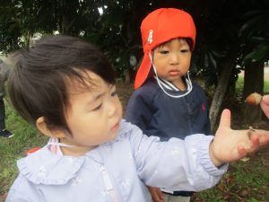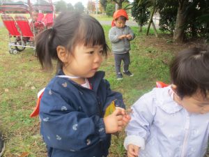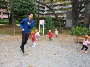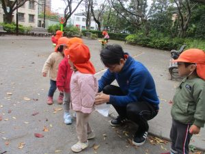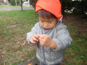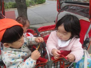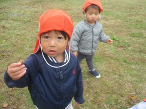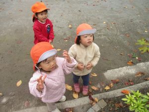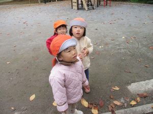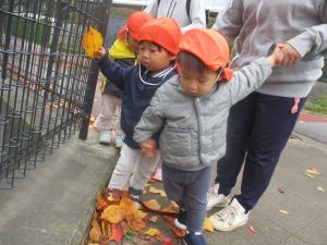 それでもまだ日中は暖かい日がありますので、公園での戸外遊びを存分に行い秋から冬への季節の移り変わりも、全員で味わっていきたいと思います♪