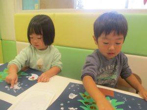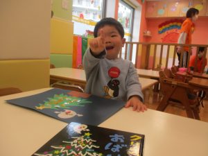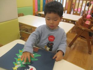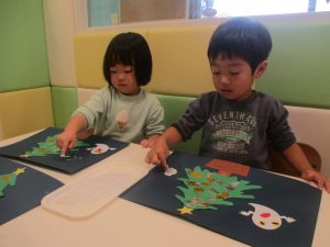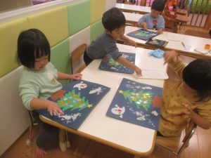 昨日に引き続きサーキット遊びで体を動かしたり、クリスマス製作に夢中でした♪