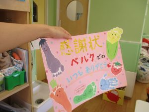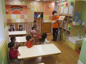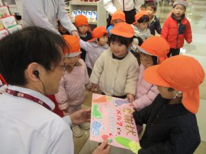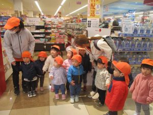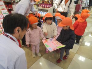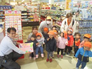 「勤労感謝週間」と言う事で、日中は園周辺のモール内にあるスーパーマーケットへプレゼントを渡しに行きました。