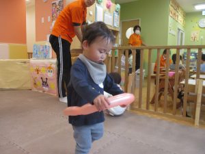 自然物探しを楽しんだり、遊具や追いかけっこを通してたくさん体を動かして遊びました。