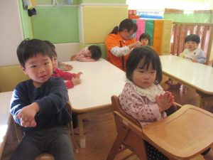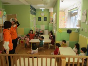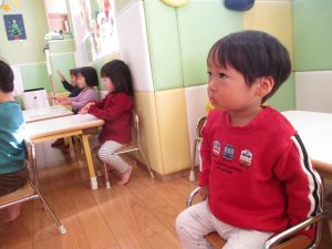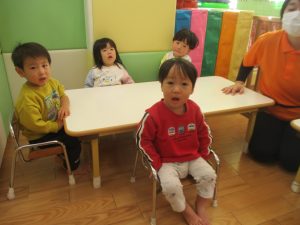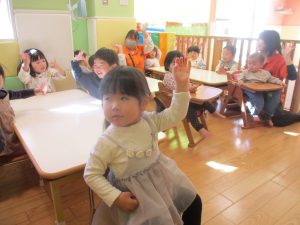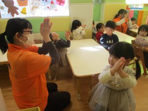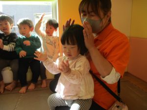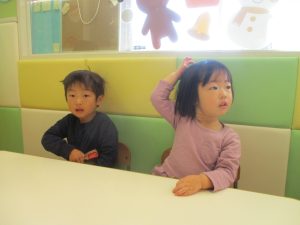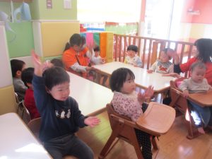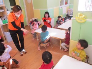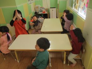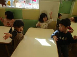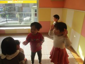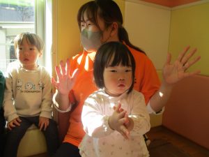 また、ハンドサインでは「シ」(両手を頭に)と「高いド」(両手を上にバンザイ)の習得も行い、2歳児クラスのお友達は2~3回目をする頃には全部をマスターしておりました☆