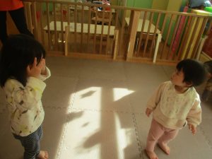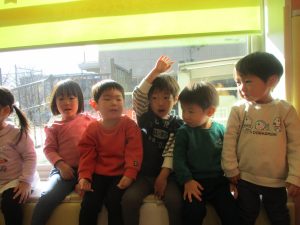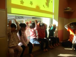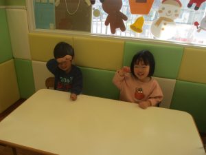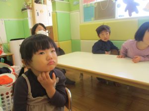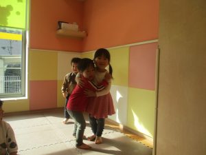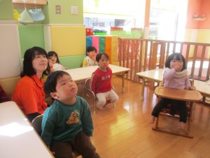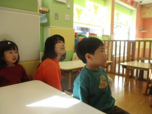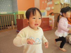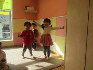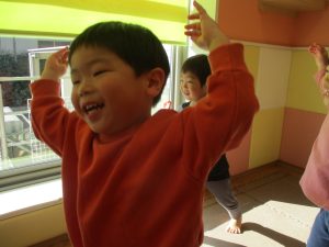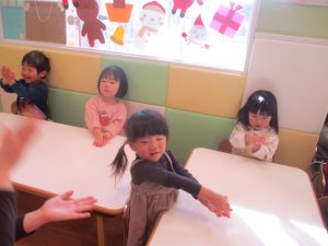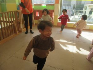 今年は12月の半ばに初雪もあり、「雪」をイメージした表現活動もみんなで盛り上がっておりますよ♪「優しい雪がちらちら~」、「大粒の雪だ!にげろ~」と先生のピアノの音に合わせてイメージをし、賑わっております!