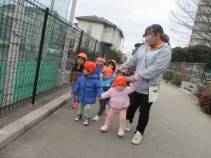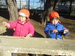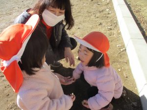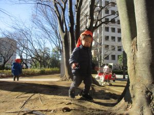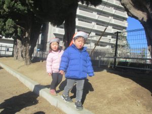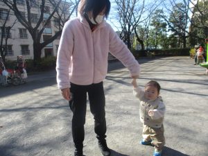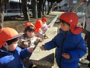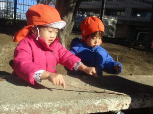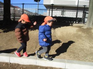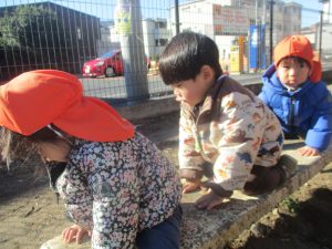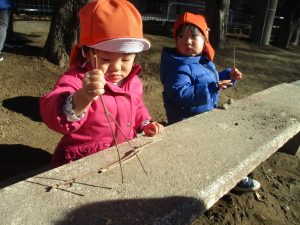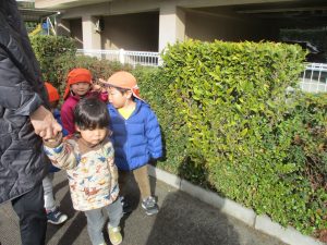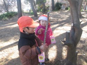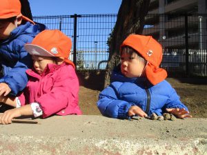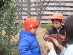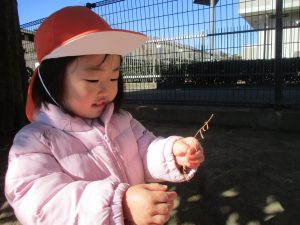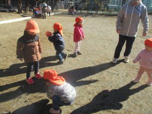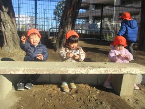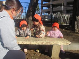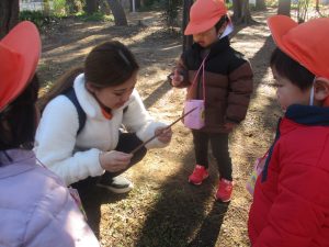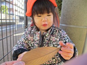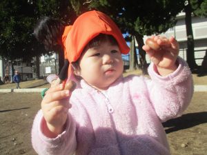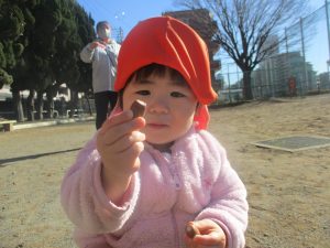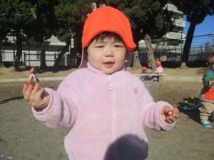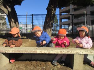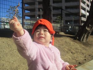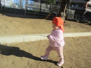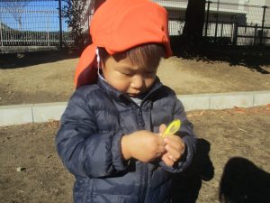 散歩先の公園では体を動かしたり、自然物探しを楽しみました!