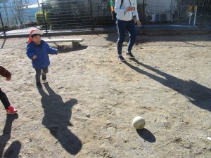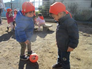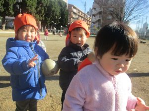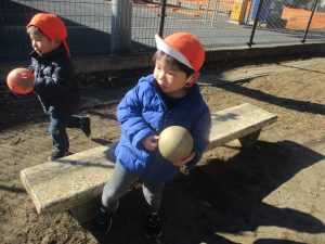 自然物探しを楽しんだり、ゴムボールを使用してたくさん体を動かして遊びました!