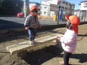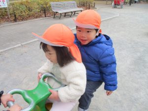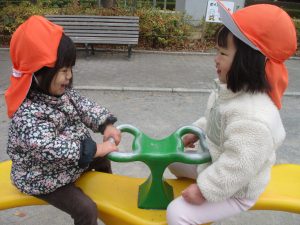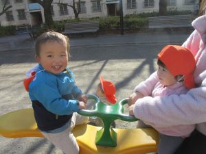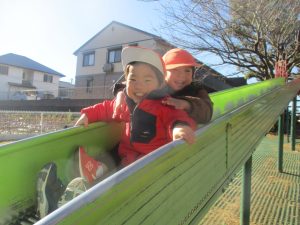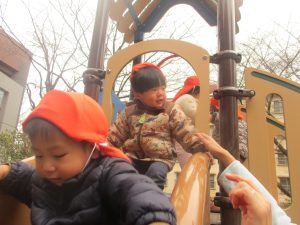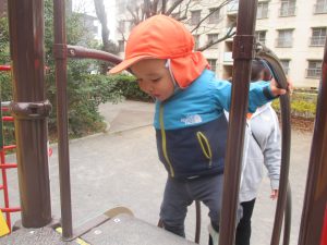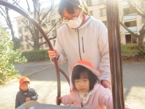 固定遊具でたくさん体を動かして遊び、心も体もポカポカになりました。